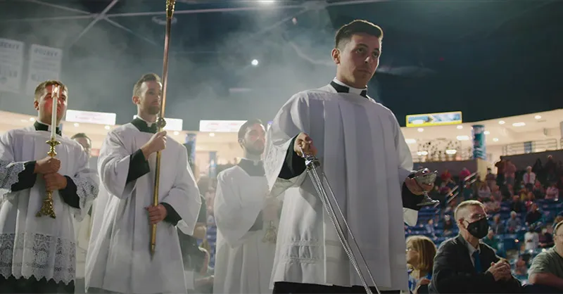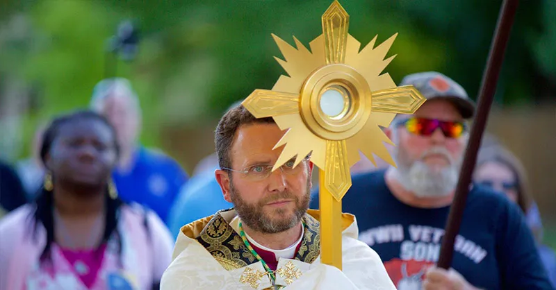 The procession will culminate when Jesus enters the stadium, carried by Bishop Cozzens in a massive monstrance created specifically for the Congress. The Eucharist will take center stage, and the stadium will fall silent as we adore the King on his throne.